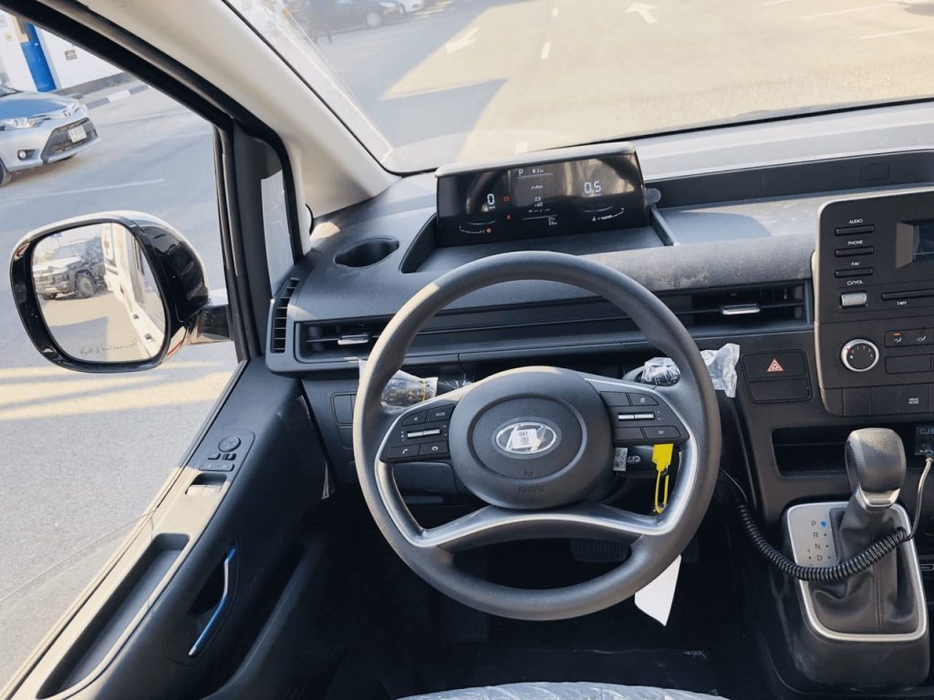 Ở phía trước, bảng taplo của Staria các khe cửa gió điều hòa được thiết kế nằm trải rộng từ phía người lái qua ghế phụ, một phong cách cũng được nhìn thấy trên Hyundai Tucson thế hệ mới nhất.